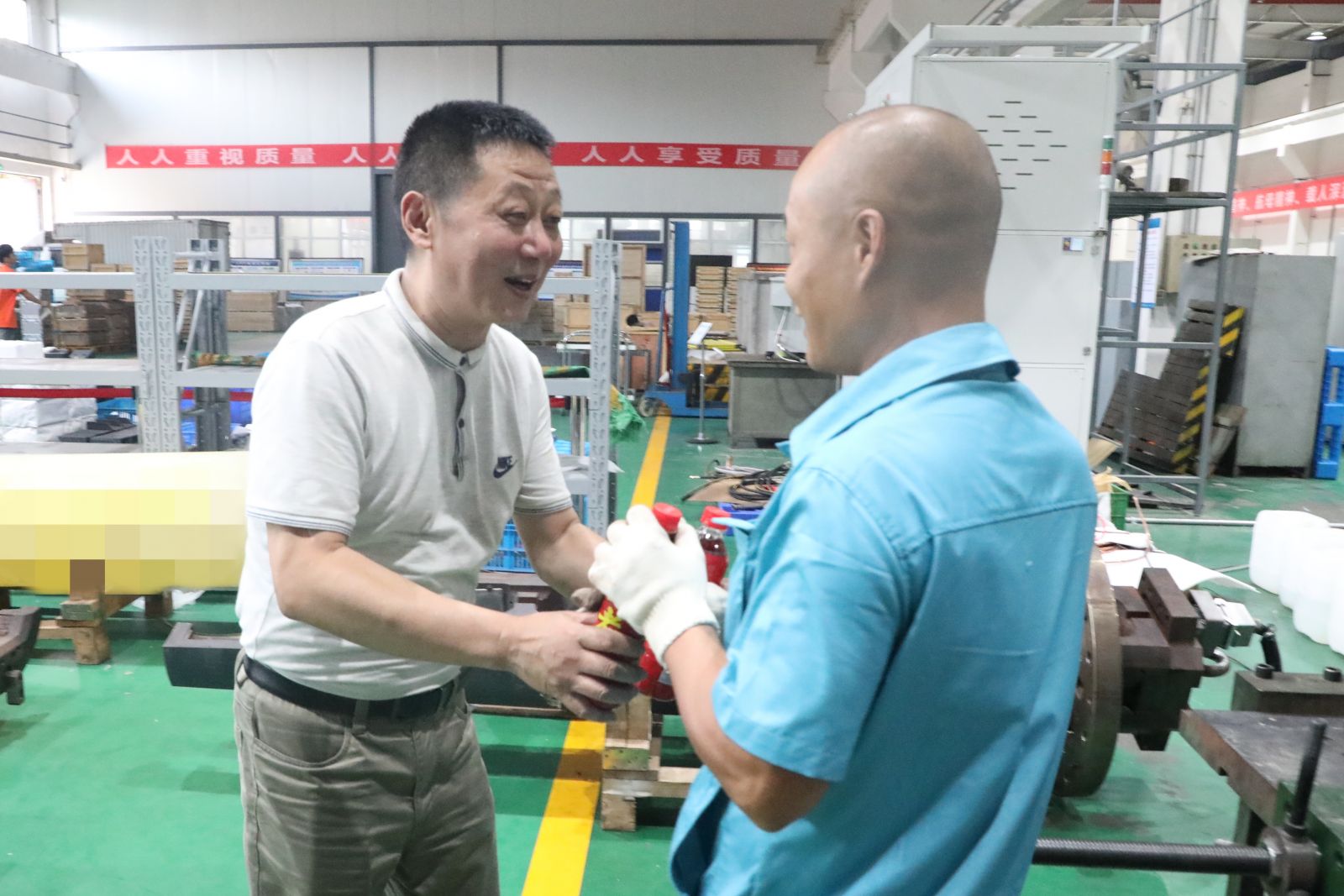 在102車間和前衛表業金屬制品和塑壓成型車間,廖軍每到一處,為堅守崗位的職工送去清涼飲品,并詳細詢問和了解職工的生產、生活情況,叮囑大家要時刻牢記把安全生產放在第一位,做好防暑降溫工作。慰問結束后,廖軍還觀看了公司產品展示廳。