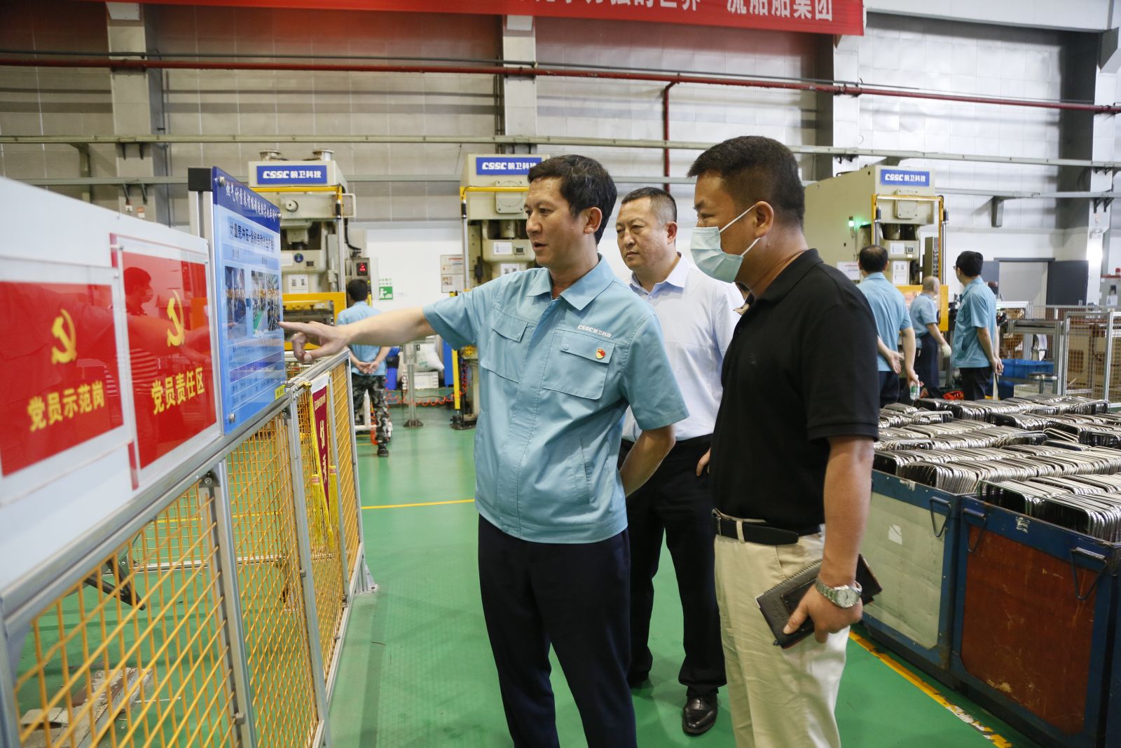 近日,武漢重工鑄鍛有限責任公司黨委書記、董事長劉志勇一行到公司參觀交流,黨委書記、董事長徐猛陪同參觀了公司產品陳列室、裝備制造部、科凱前衛、前衛表業生產現場。